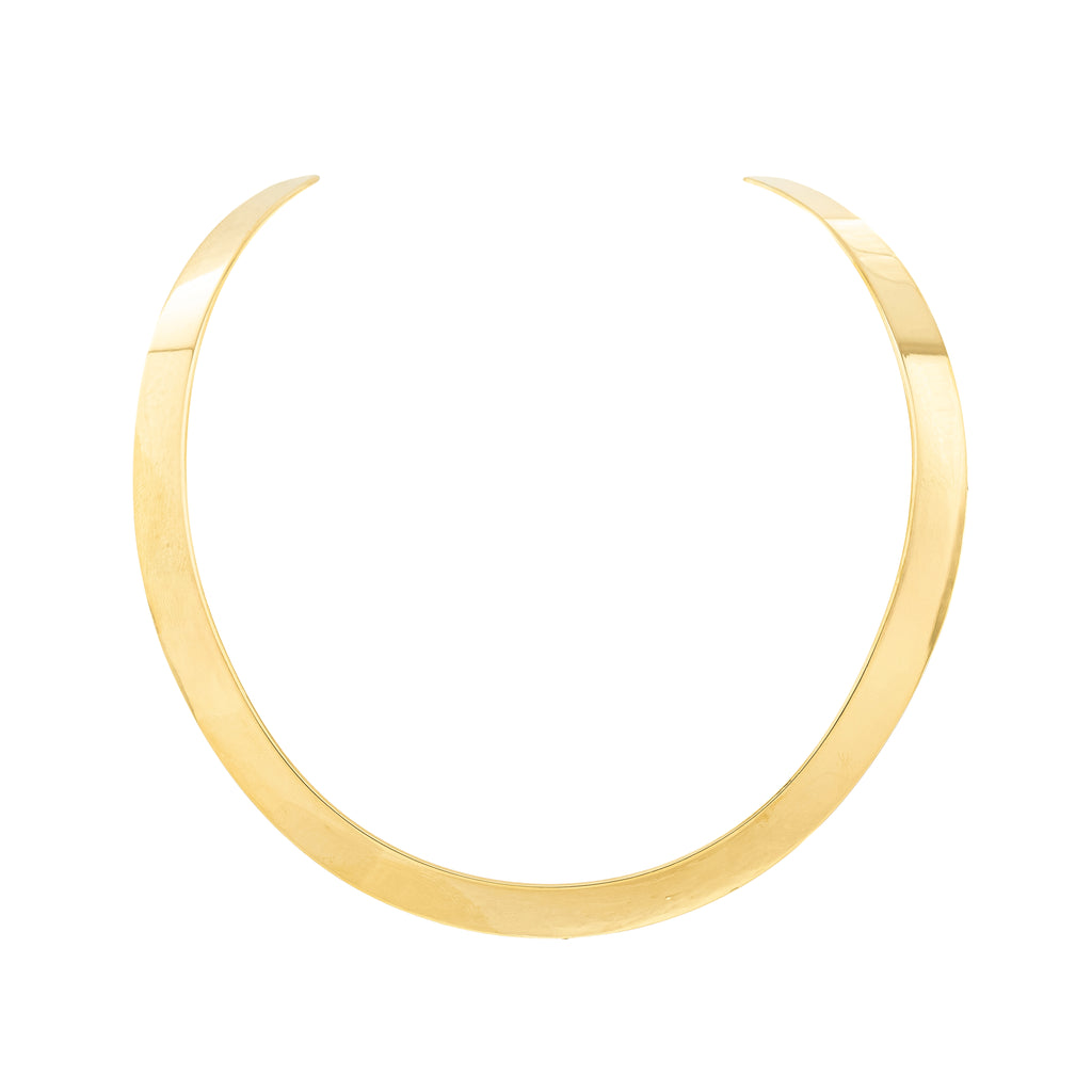 Refinada e elegante. Apresenta um design anatômico, projetado para abraçar suavemente o contorno do pescoço, criando uma aparência fluida e natural. Sua simplicidade sofisticada é o que o torna verdadeiramente excepcional, adicionando um toque de glamour discreto a qualquer visual. Use-o sozinho para um visual minimalista e elegante ou combine com outras chockers para um estilo mais arrojado.