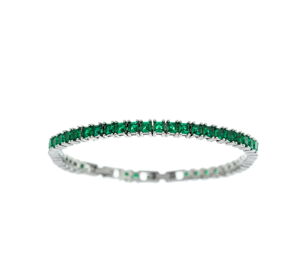 Pulseira com pedras verde esmeralda. Acabamento em 4 pontas.