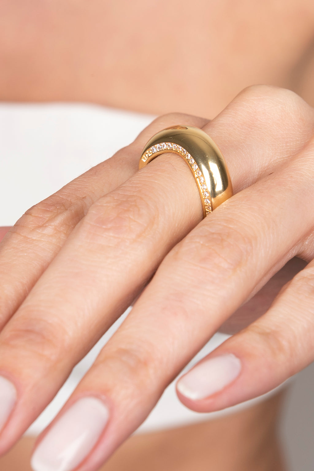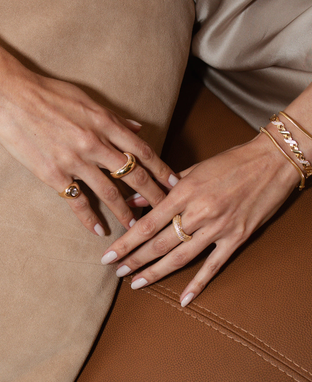 O Anel Viva é uma peça sofisticada, com uma fileira de zircônias nas laterais que adiciona um toque diferenciado. Sua versatilidade é garantida pelo ajuste em qualquer numeração de dedo. Experimente esse acessório único!