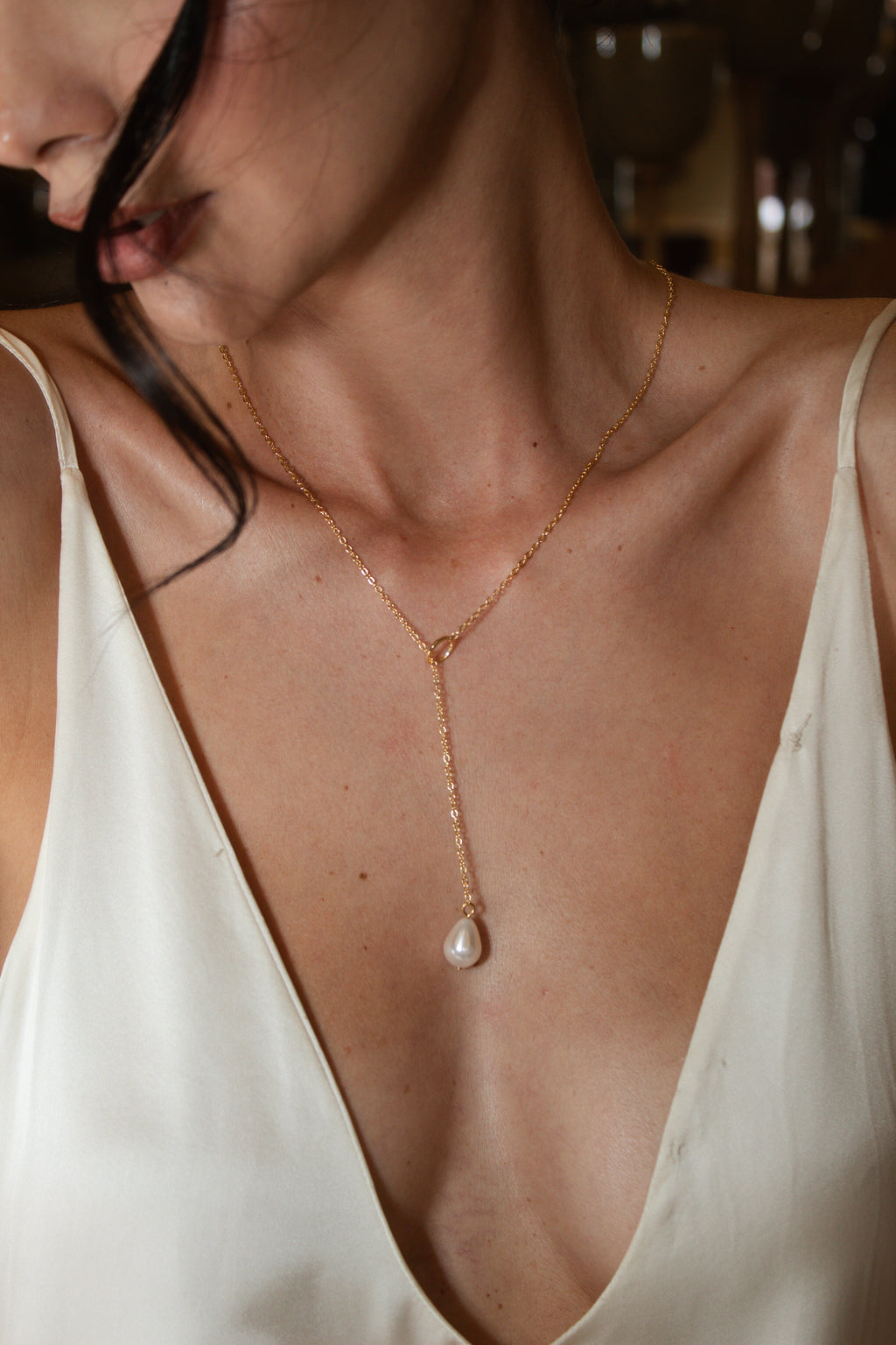 O Colar Dream possui um design moderno e versátil com sua ajustabilidade estilo "gravatinha". Com aproximadamente 60cm de comprimento e um lindo pingente de pérola shell em formato de gota, pode ser usado no colo ou nas costas, proporcionando diferentes looks para diversas ocasiões.