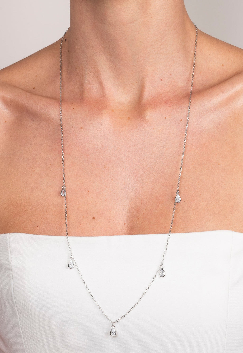 Com pingentes de zirconias em formato de gota, este colar de aproximadamente 69cm de comprimento é perfeito para compor looks tanto sozinho quanto junto a outros colares. Adicione sofisticação e brilho à sua coleção de acessórios com este colar único.